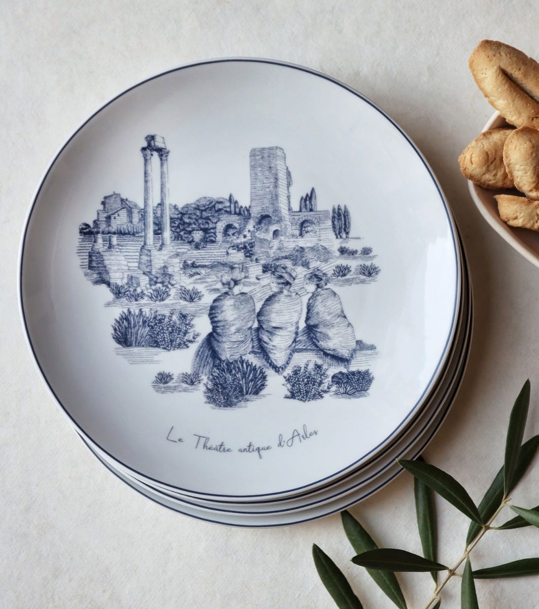 - Vaisselle en porcelaine fine décorée, réédition de l’emblématique ligne ‘‘Promenade en Provence’, reprennant les iconique monuments de notre belle Provence. Ses motifs minutieux et détaillés placés sur la porcelaine, grâce à la technique de la chromolithographie, lui confèrent toute son charme et son authenticité.