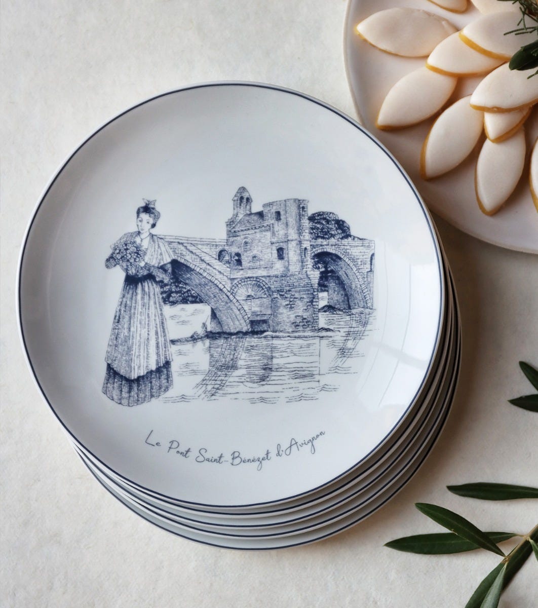 - Vaisselle en porcelaine fine décorée, réédition de l’emblématique ligne ‘‘Promenade en Provence’, reprennant les iconique monuments de notre belle Provence. Ses motifs minutieux et détaillés placés sur la porcelaine, grâce à la technique de la chromolithographie, lui confèrent toute son charme et son authenticité.
