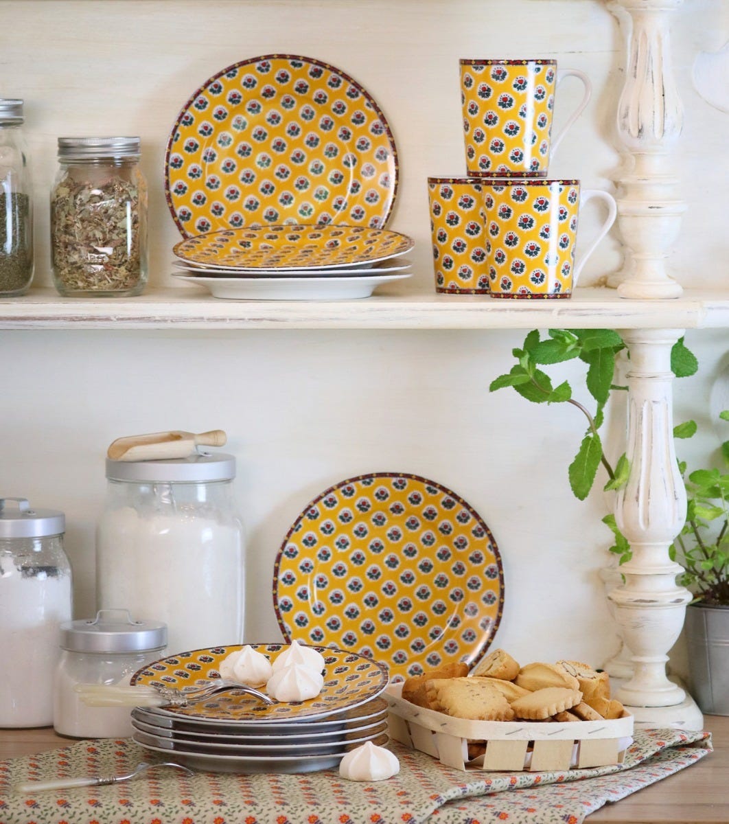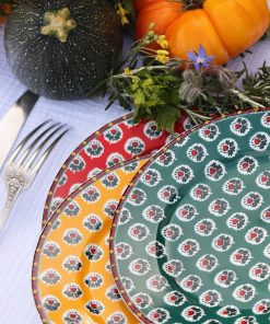 - Vaisselle en porcelaine fine décorée, réédition de l’emblématique ligne ‘‘La fleur d’Arles’’, motif traditionnel provençal se retrouvant aussi sur du linge de table. Ses motifs minutieux et détaillés placés sur la porcelaine, grâce à la technique de la chromolithographie, lui confèrent toute son élégance et son authenticité.