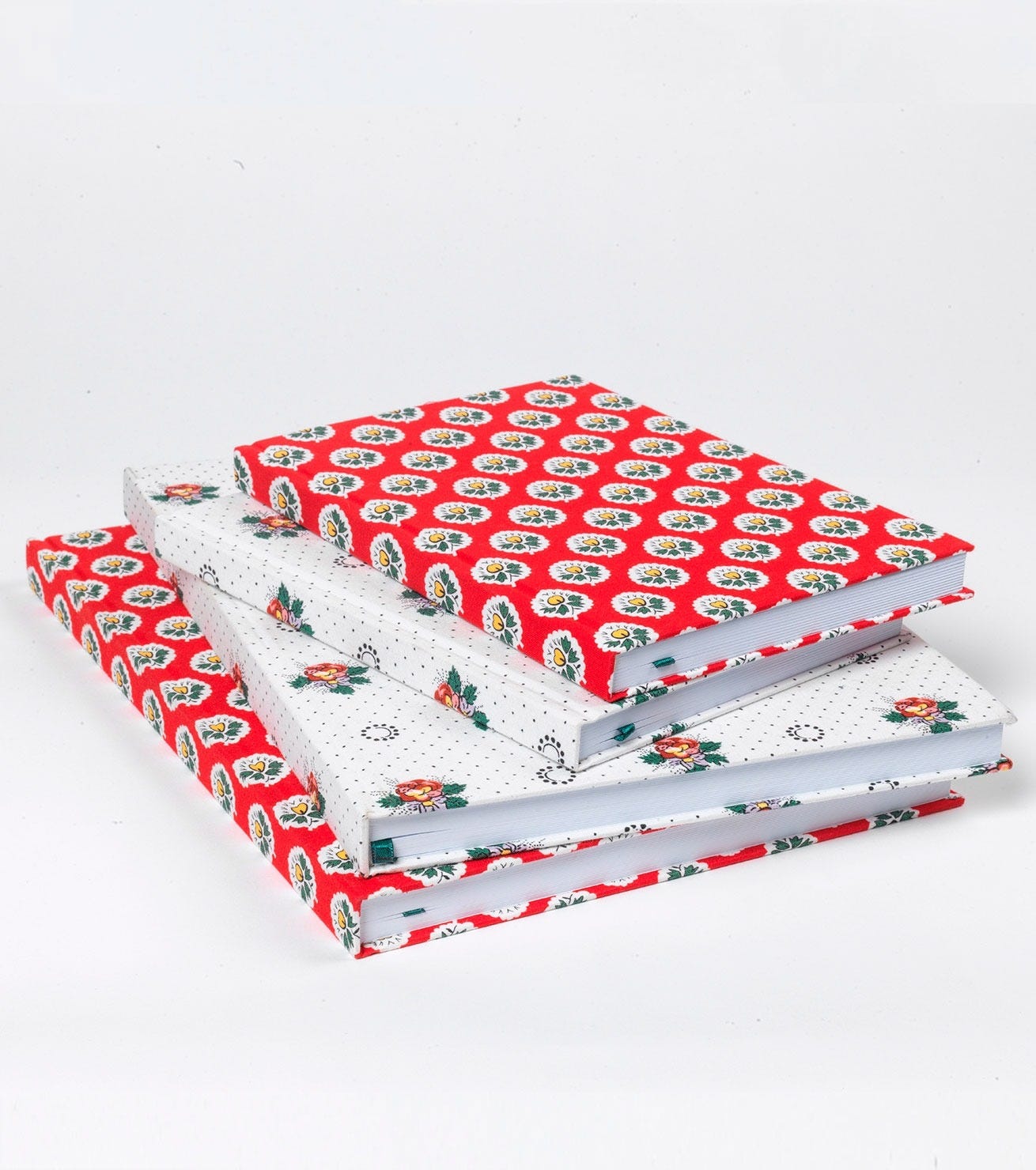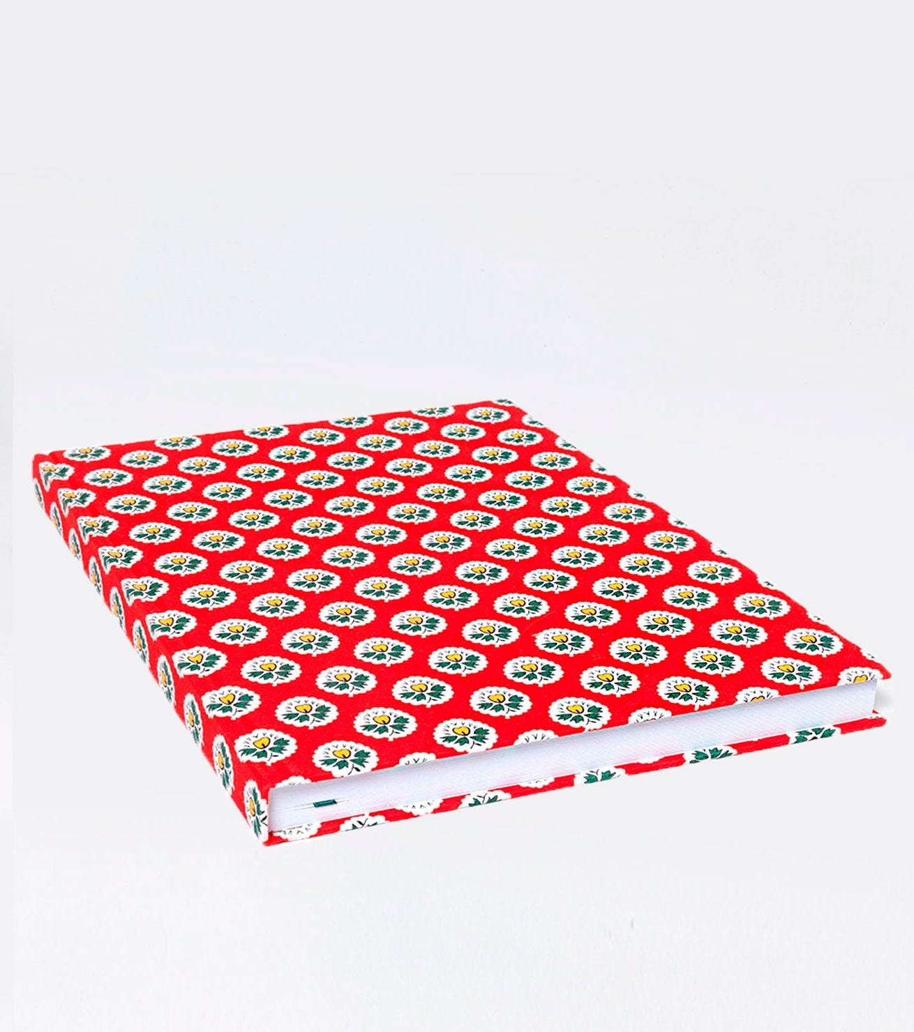 - Couverture rigide rembordé de tissus imprimé Fleur d’Arles Coquelicot