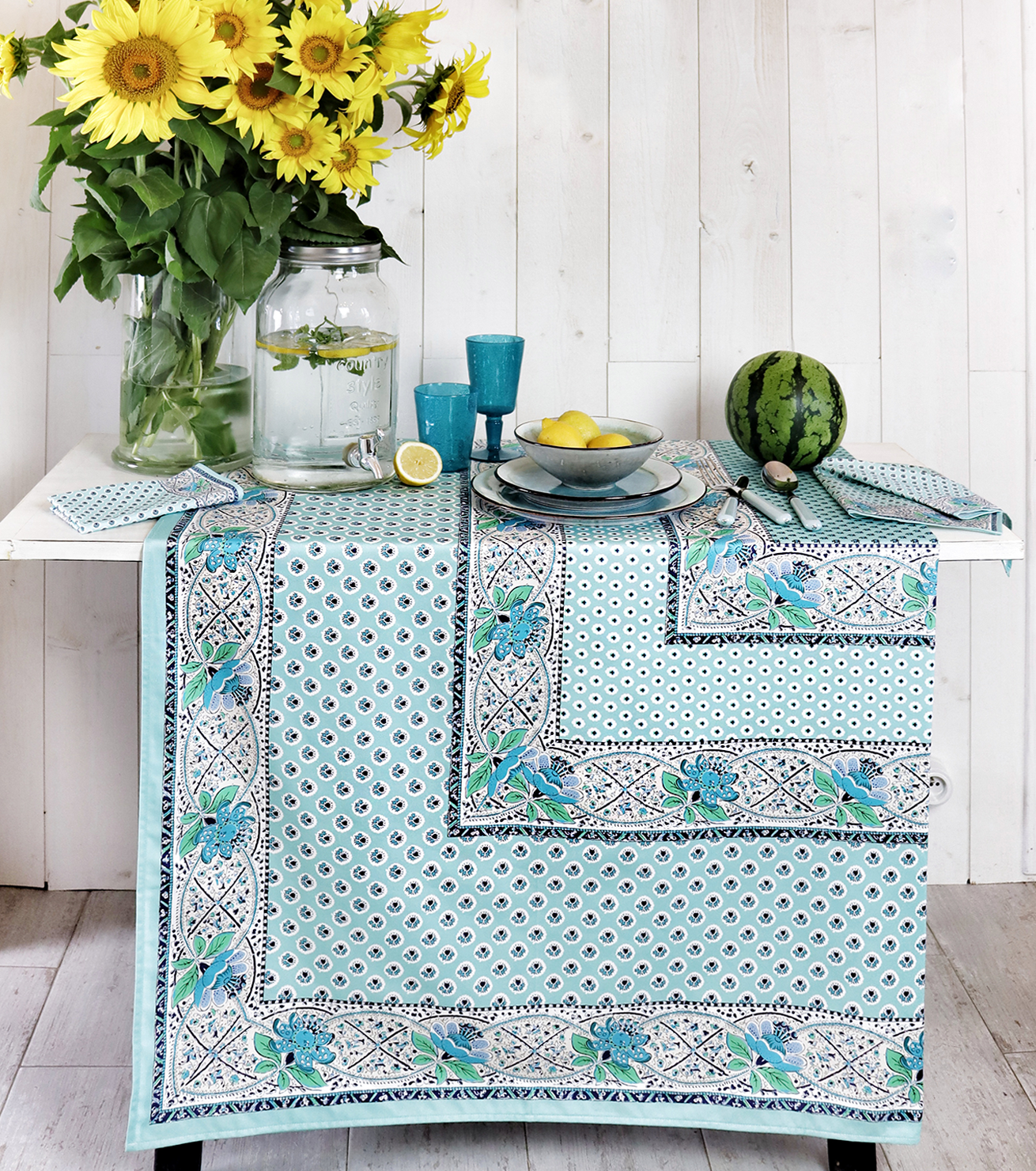 Souleiado Maison Maison Nappe Rectangulaire « Baumanière » Turquoise | Turquoise