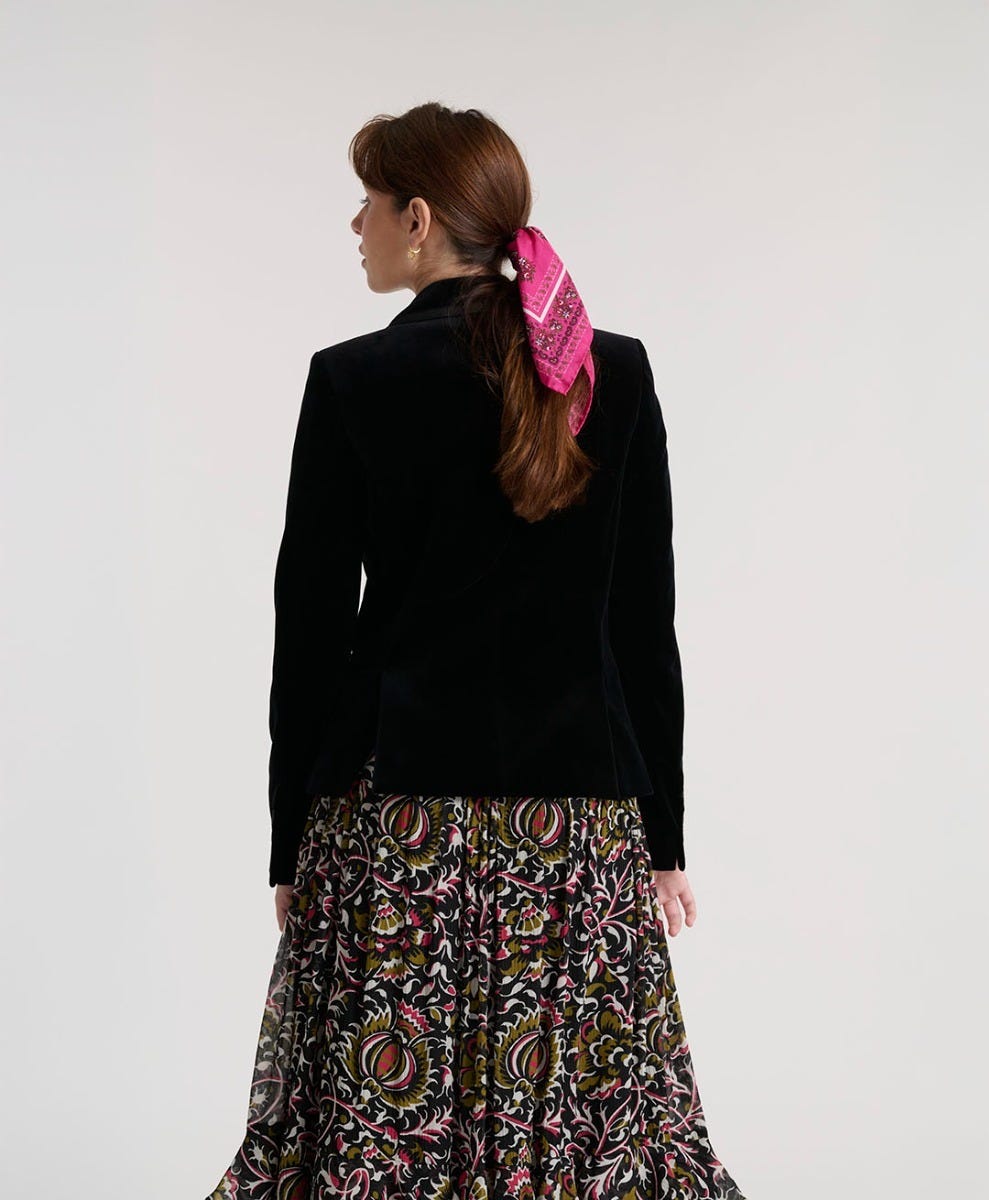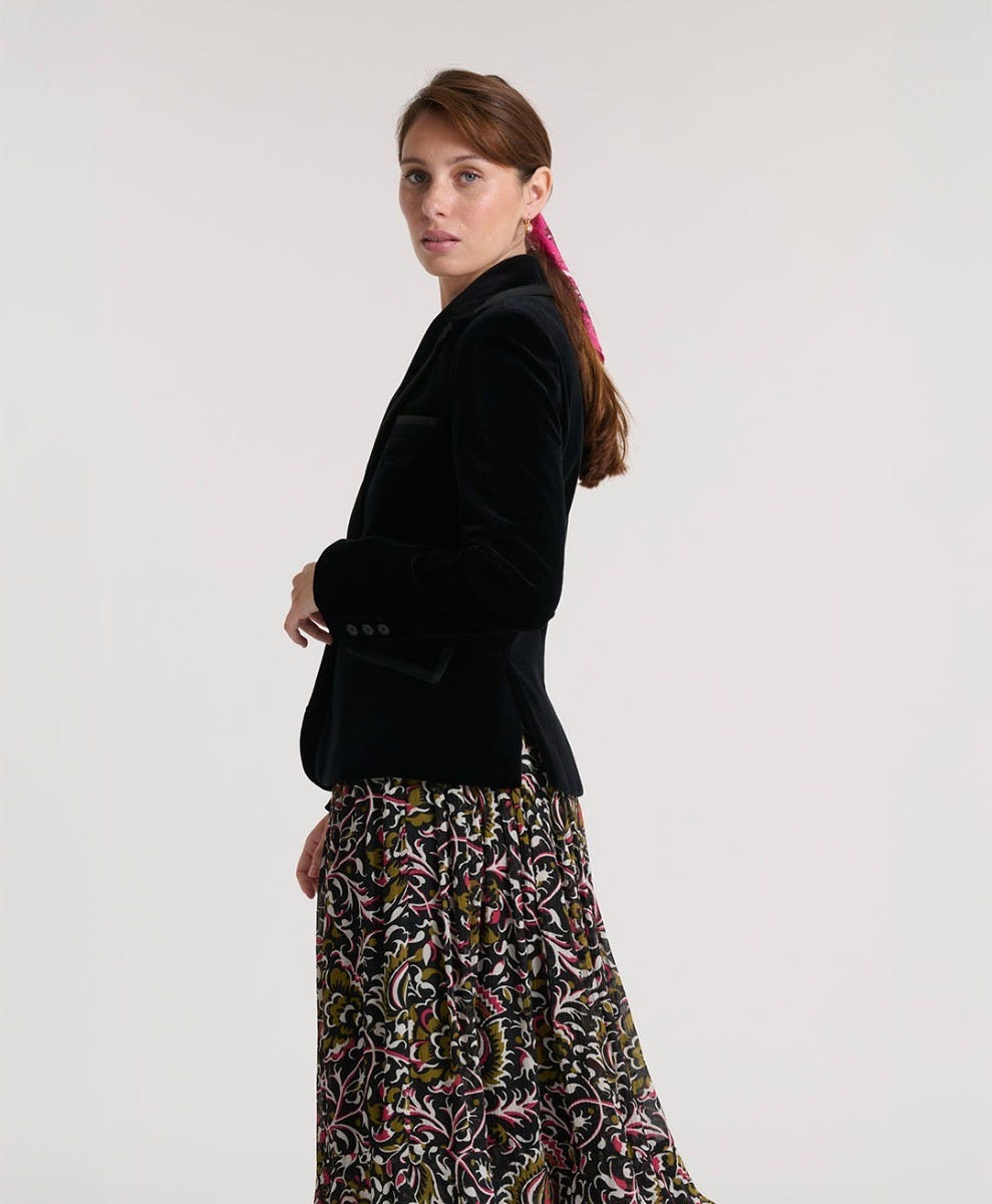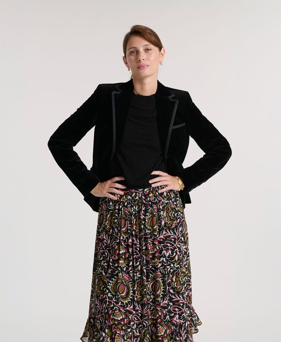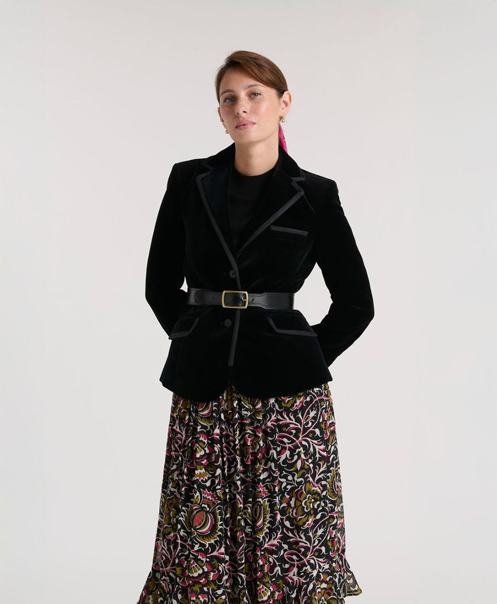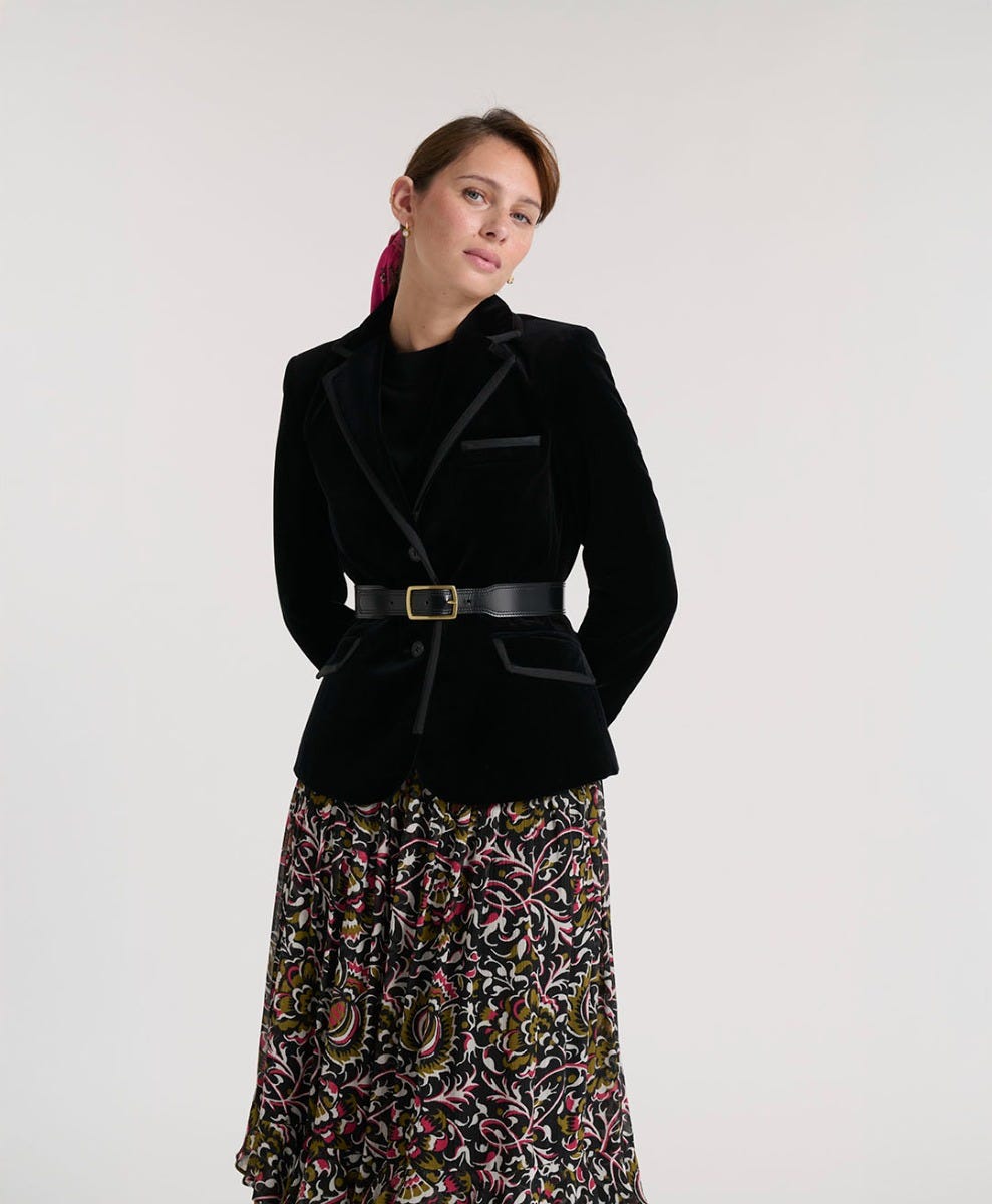 - Notre iconique veste Chloé ! Cette veste blazer intemporelle de la Maison d’inspiration Gardian se pare d’un velours lisse légèrement stretch. Sa ganse noir vient souligner délicatement le col et les poches lui conférant ainsi tout son raffinement. Une veste tout aussi élégante qu’indispensable à votre garde-robe.