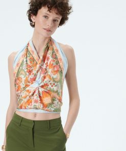 Souleiado Femme Accessoires Carré Soie Italienne Kaki Fuchsia 90×90 Cm | Kaki Et Fuchsia